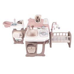 Votre petit pourra commencer par donner à manger à son poupon dans le coin cuisine, et ensuite faire un petit tour du côté de la salle de bain pour le changer et le laver. Enfin il suffira de border bébé, et de lui lire une histoire à la lueur de la lampe phosphorescente pour qu'il s'endorme !