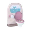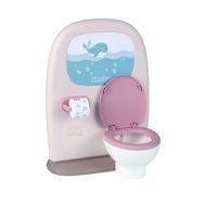 Tout est à ta disposition pour apprendre l'hygiène à ton poupon : les toilettes, 1 papier hygiénique, 1 lavabo, 1 miroir, 1 brosse à dents, 1 gobelet