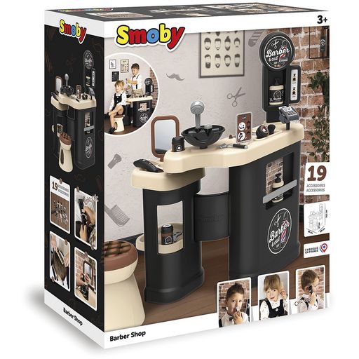 - Très complet il est composé d'un espace coiffure, d'un espace shampoing et d'un comptoir marchand. Votre enfant pourra alors se mettre dans la peau d'un barbier, d'un coiffeur et d'un vendeur.