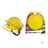 Casque en plastique avec un lien pour l'ajuster à la taille de la tête de l'enfant.