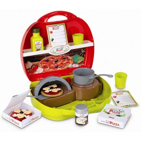 Cuisine comme un chef grâce à ta mini Cuisine Pizza. Pratique, tu peux préparer tes pizzas partout grâce au petit format de ta pizzeria et de sa anse. Amuses-toi à devenir pizzaïolo et à garnir tes pizzas comme tu aimes grâce aux différentes garnitures !