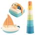 - Coffret éveil et bain Little Smoby Green composé d'une magic tower, d'un panier des formes et d'un bateau à voile.
