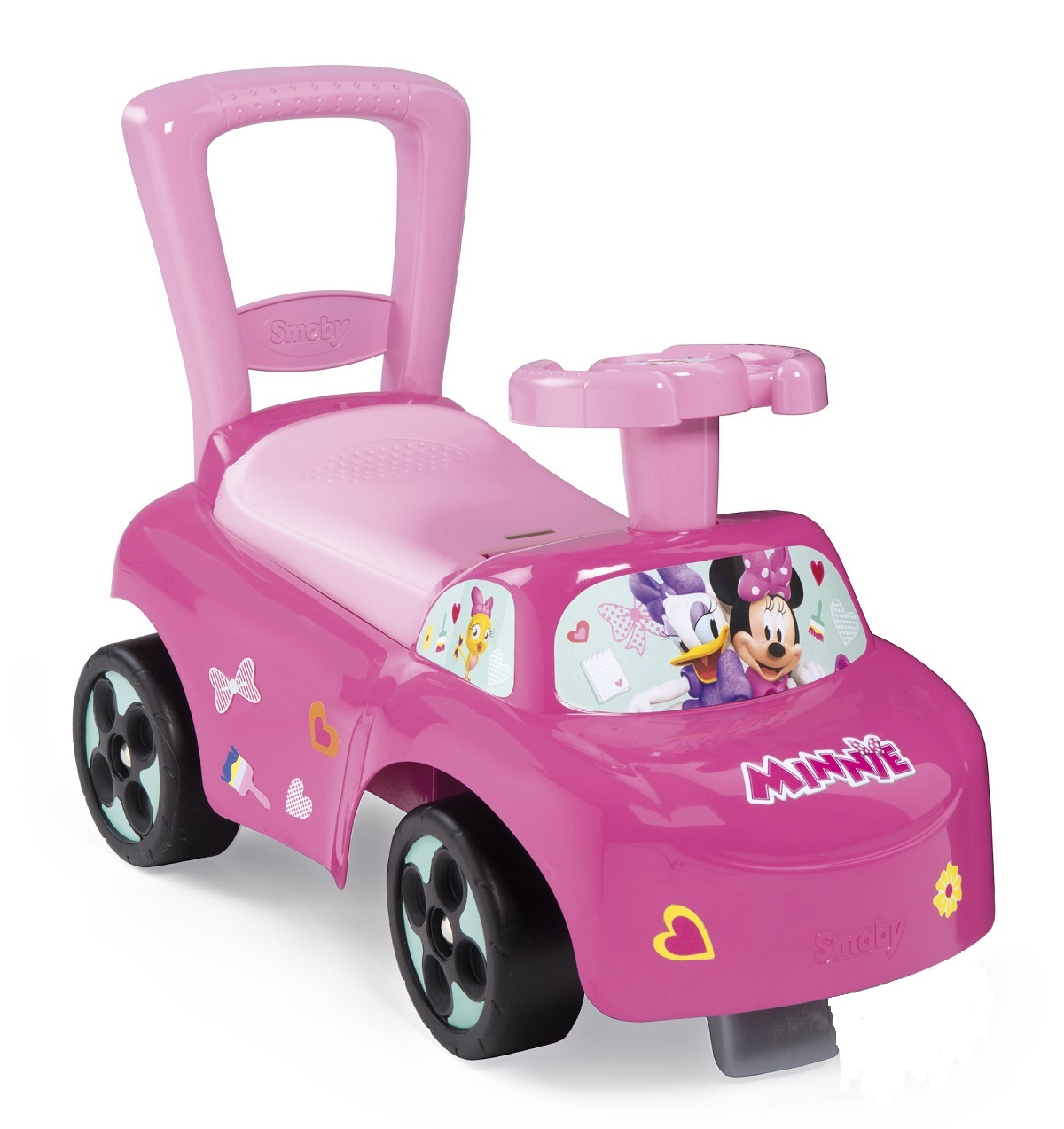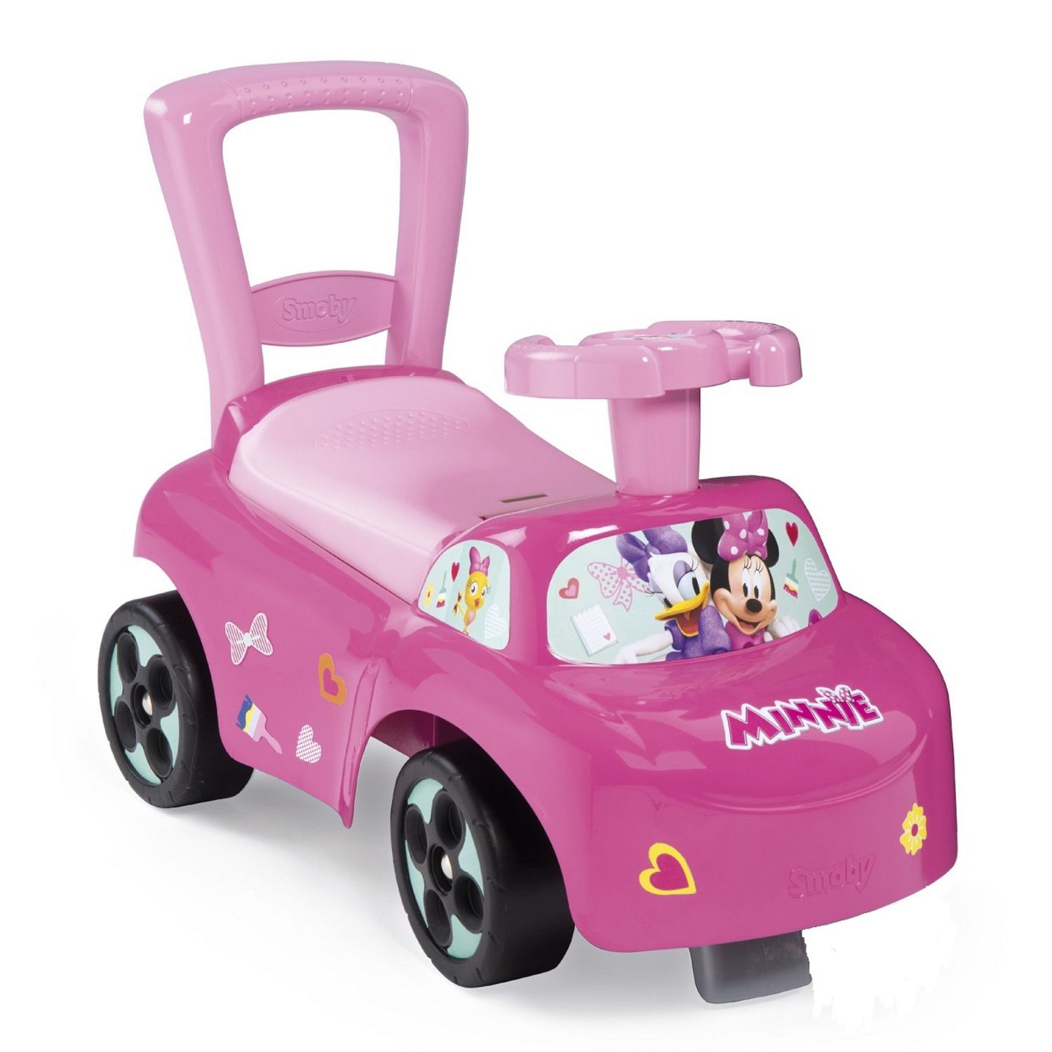 L'auto porteur Minnie de Smoby, c’est une voiture pour les petites filles dès 10 mois ! Le porteur auto dispose d’un châssis ergonomique, ultra-stable ; il est équipé de butées anti-bascule avant et arrière pour plus de sécurité et d’un coffre à jouets sous le siège.