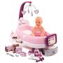 Grâce à la nursery électronique Baby Nurse de Smoby, prends soin de ton bébé et soigne-le avec les nombreux accessoires et en t’aidant de la tablette électronique amovible ! Une LED et un son se déclenchent aléatoirement, en indiquant ce qui ne va pas et ce qu’il faut faire. 3 boutons sur la tablette, plusieurs sons et une mélodie pour le mobile. POUPON INCLUS