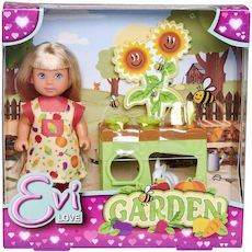 Mini poupée mannequin 12cm. Evi s occupe de son jardin, elle plante ses légumes et a un petit lapin. Inclus : 1 lapin + des légumes + un potager surélevé. Pour les enfants à partir de 3 ans.