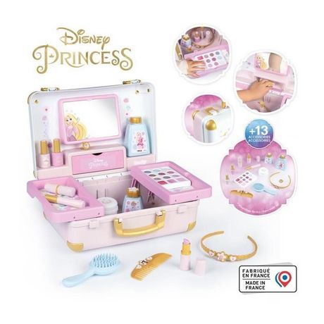 Smoby - Disney Princesse - Valise beauté facile a transporter - 13 accessoires inclus : coiffure, onglerie, maquillage - Fabric