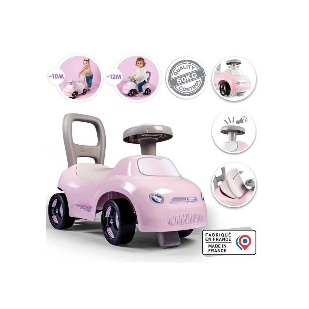 Smoby - Porteur enfant 2 en 1 - Auto Rose - Coffre sous la selle + klaxon - Des 10 mois - Fabrication française
