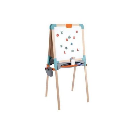 Ce tableau double face est un excellent outil pédagogique qui encourage la créativité et le développement cognitif des enfants. Les deux faces permettent de varier les activités, passant des dessins à la craie aux exercices d'écriture ou de dessin avec des feutres sur la surface blanche. Cela aide à améliorer les compétences artistiques et à stimuler l'imagination.