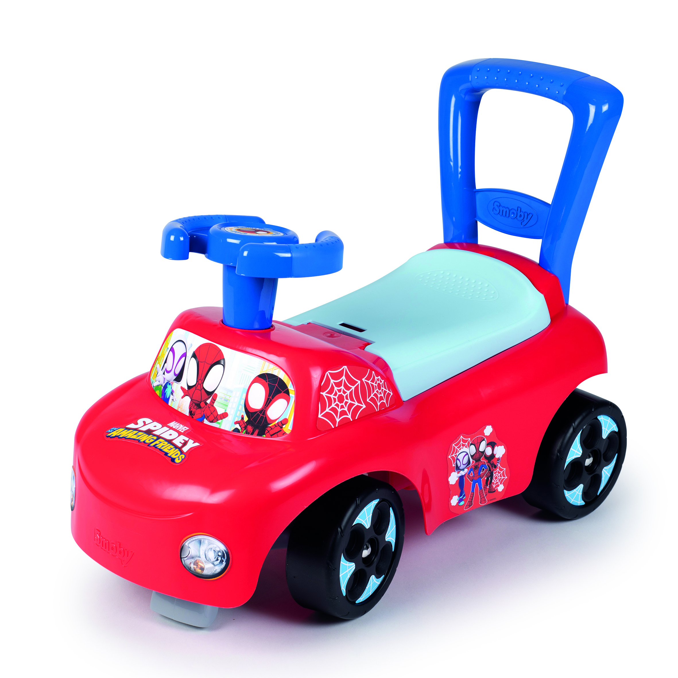 Ce porteur Spidey et ses Amis Extraordinaires a été conçu pour offrir à votre enfant un environnement de jeu sûr. Il dispose d'un châssis ergonomique très stable et de butées anti-bascule à l'avant et à l'arrière.