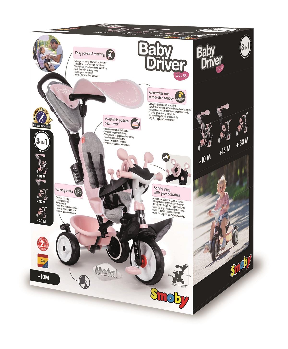 Le Baby Driver allie sécurité, confort et jeu. Ce nouveau modèle "Plus" est encore plus rassurant et plus complet. Il est doté d'un frein de parking, très utile et surtout sécurisant, ainsi que d'un dossier plus haut pour un meilleur maintient. Ce modèle est conforme à la norme poussette EN1888-1.
