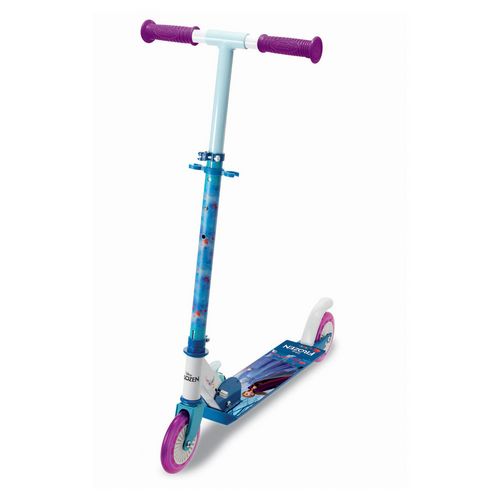 Guidon réglable en hauteur sur 3 niveaux (73/78/83cm) et revetement antidérapant et frein arriere au pied garantissent des balades en toute sécurité. Pliage facile et poignées ergonomiques rétractables ! La patinette 2 roues pliable La Reine des Neiges 2 est idéale pour s'amuser entre copains ! A pa