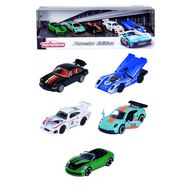 Retrouvez les automobiles les plus célèbres au format mini et en métal grâce à Majorette !Véritables passionnés ou simples amateurs, vous trouverez votre bonheur parmi les nombreuses gammes que présente la marque !Ce grand coffret se compose de 5 modèles de véhicules Porsche à roue libre : 1 Panamera SOS Police, 1 Porches 934 RSR, 1 Porsche 718 Boxster W/B, 1 Porsche 911 GT3 RS, et 1 Porsche 917 KH Vintage R.Vous serez vite séduit par ces véhicules à échelle 1/64ème qui disposent de parties ouvrantes, de phares translucides et de suspensions !N'hésitez plus à commencer une nouvelle collection ou à amuser vos enfants avec ces petites voitures !A partir de 3 ans.