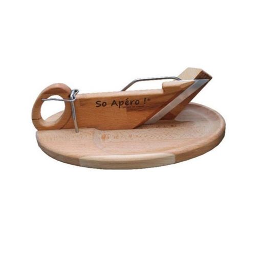 So Apero 110149 La véritable guillotine à saucisson ovale de la marque So Apéro 110149, indispensable pour vos apéritifs. Fini les découpes interminables avec la planche et le couteau. Facile à utiliser, rapide, sans effort. En bois brut non traité et non teinté pour respecter les produits alimentaires tant d'un point de vue bactériologique que gustatif.