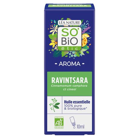 100 % huile essentielle de ravintsara issue de l'agriculture biologique. Partie de la plante : feuilles Composants principaux : 1,8 cinéol Extraction : Distillation à la vapeur d'eau.