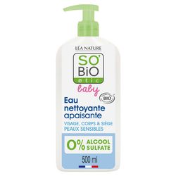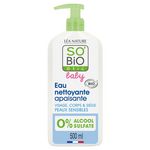 L'Eau nettoyante apaisante SO'BiO étic® baby nettoie et rafraîchit la peau de bébé en douceur sans nécessité de rinçage. Dès l'application, sa peau est propre et souple.