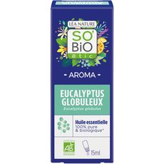 100 % huile essentielle d'Eucalyptus Globuleux issue de l'agriculture biologique. Partie de la plante : Feuilles Composant principal : 1,8 cinéoleExtraction : Distillation à la vapeur d'eau.