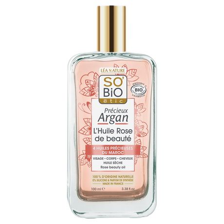 Précieux Argan L'huile Rose de beauté sèche aux 4 huiles essentielles du Maroc pour visage, corps et cheveux