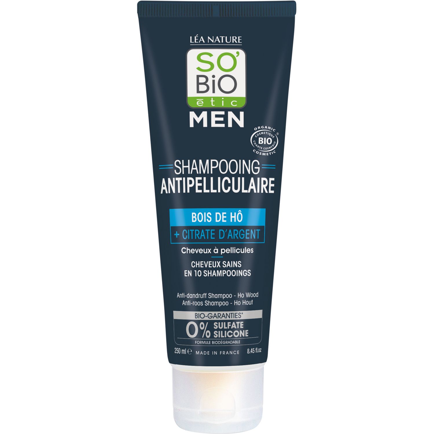 Shampooing Men antipelliculaire Bois de Hô & citrate d'argent So Bio Etic Cheveux à pellicules Cheveux légers fraîcheur frais élimine pellicules sans sulfate Homme Quotidien purifiant So Bio efficacité naturel d'origine naturelle