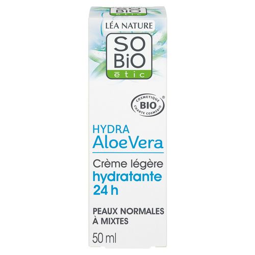 Crème Légère Hydratante 24h 50ml, peaux normales à mixtes, Hydra Aloe Vera, SO'BiO étic