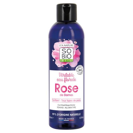 SO'BIO étic propose une véritable eau florale de Rose de Damas. Revitalisante et tonifiante, elle adoucit et ressource la peau tout en offrant une agréable sensation de fraîcheur. Idéale pour un teint éclatant, elle est l'alliée d'une peau douce et lumineuse. Propriétés revitalisantes et tonifiantes Adoucit et ressource la peau Peau éclatante Tous type de peaux Testé sous contrôle dermatologique 99% d'origine naturelle 20% du total des ingrédients sont issus de l'agriculture biologique Rose de Damas testé sous contrôle dermatologique COSMOS Organc certifié par Ecocert greenlife Flacon 100% recyclé et recyclable