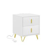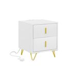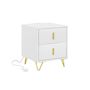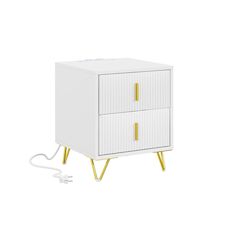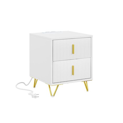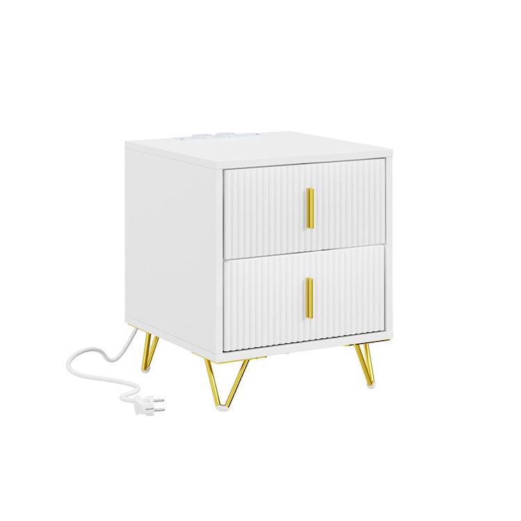 Les détails soignés — nervures tactiles sur les façades, contraste subtil entre le blanc pur et les accents dorés — confèrent à ce meuble une touche luxueuse sans excès. Son format compact (40 × 36,5 × 47 cm) s'adapte parfaitement aux chambres modernes, même les plus petites.