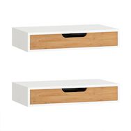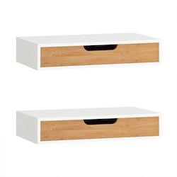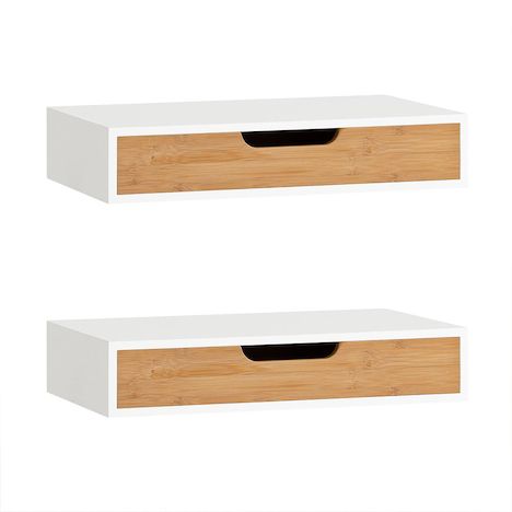 Tiroir pratique en bambou pour ranger petits objets et accessoires personnelsStructure robuste en MDF avec finition laquée lisse et facile à entretenirDesign flottant moderne : montage mural gain de place, surface ouverte pour décorationCette élégante étagère murale offre un espace de rangement supp