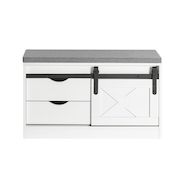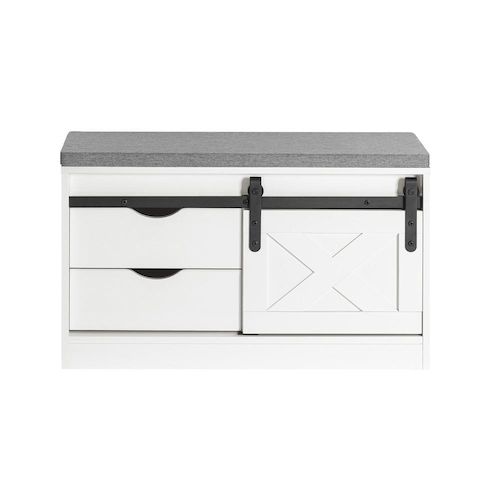 Ce banc chaussures transforme votre routine quotidienne en moment agréable. Sa conception intelligente intègre un espace de rangement spacieux caché derrière une porte coulissante style grange , permettant d'organiser jusqu'à plusieurs paires de chaussures tout en les maintenant à portée de main. La surface d'assise vous offre le confort nécessaire pour enfiler vos chaussures tranquillement.