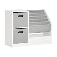 Cette bibliothèque offre une solution de rangement généreuse et structurée. Ses cinq étagères accueillent parfaitement les livres, tandis que les deux paniers latéraux en tissu non tissé sont parfaits pour les poupées ou les vêtements. Le grand tiroir du bas se révèle idéal pour les jouets de construction et les petits objets.