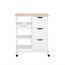 Cette desserte de cuisine moderne avec roulettes est la solution idéale pour optimiser le rangement et le service dans votre espace culinaire.