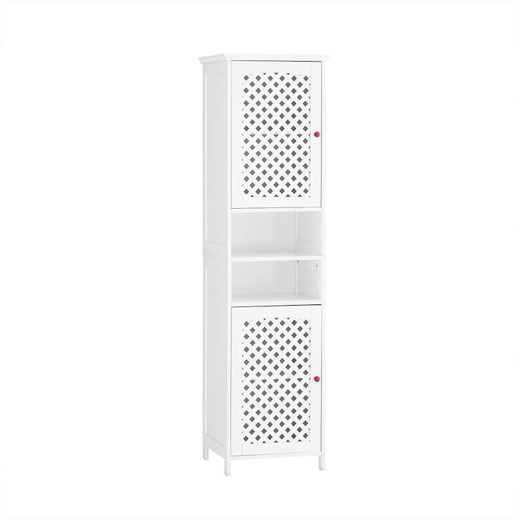 Cette colonne de salle de bain blanche allie un rangement généreux à un design contemporain pour une organisation optimale de votre espace.