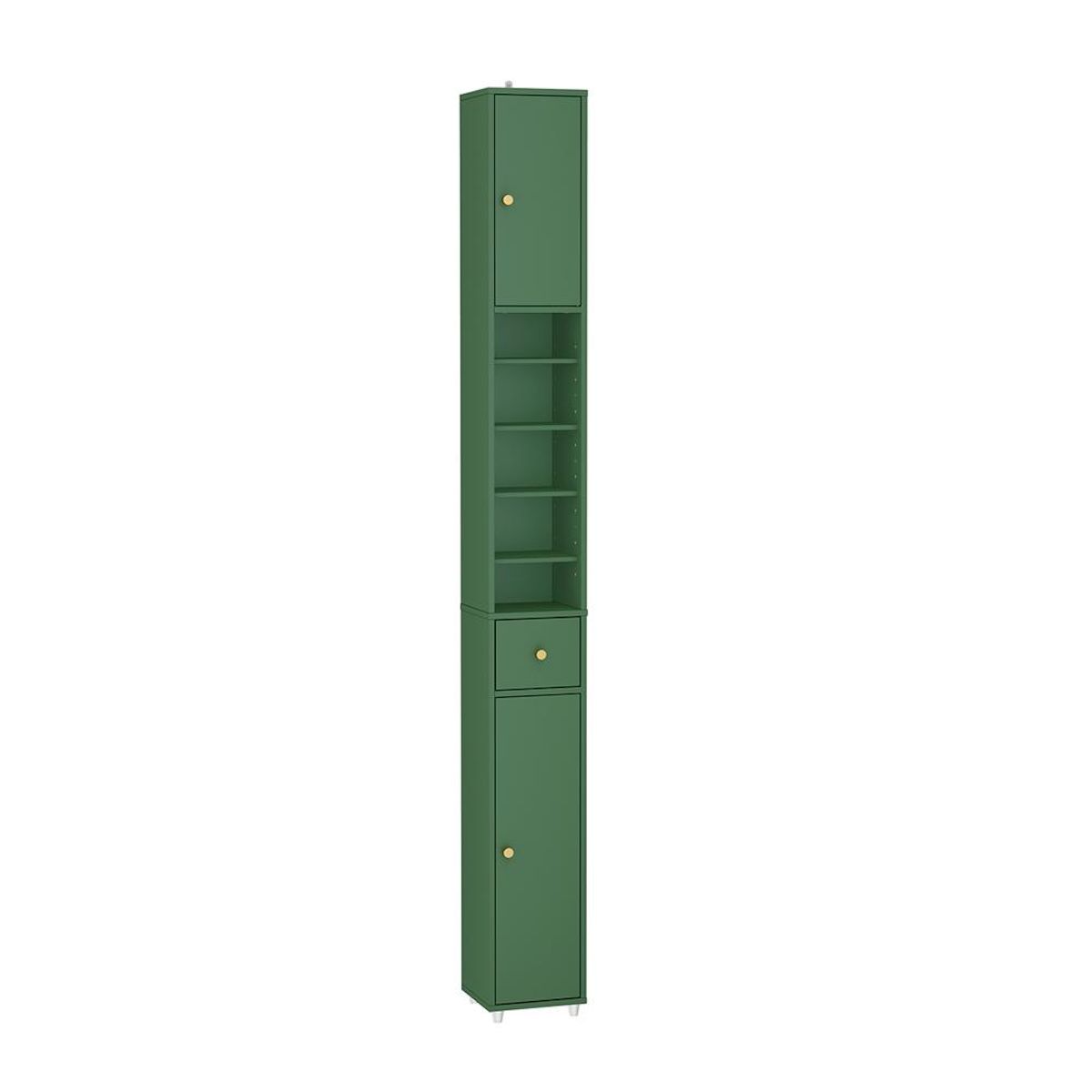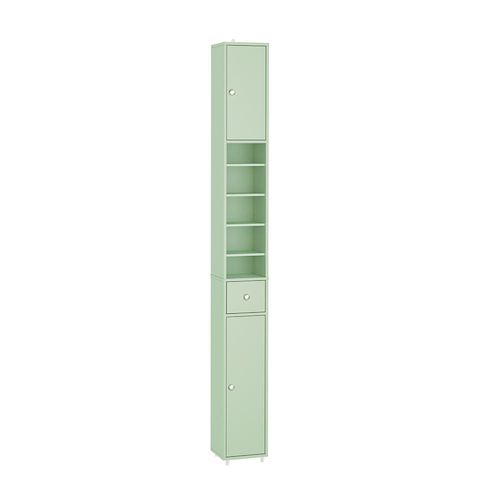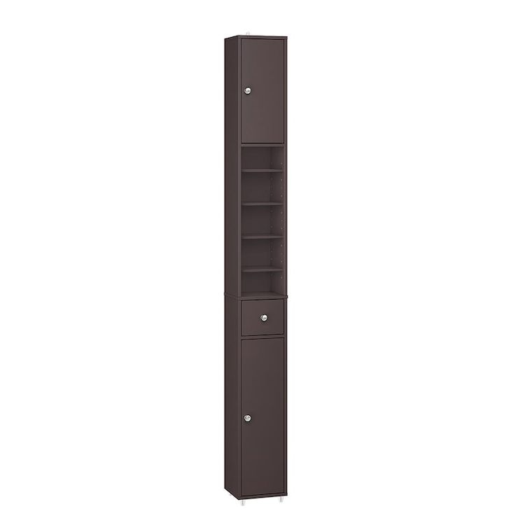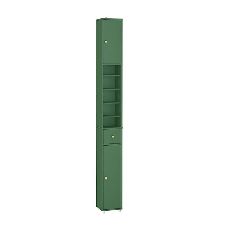 Optimisez l'espace de votre salle de bain avec cette colonne de rangement étroite et élégante, parfaite pour le stockage vertical dans les petits espaces.