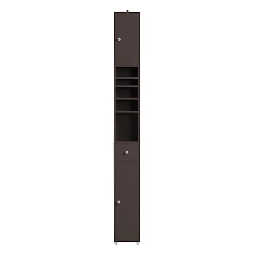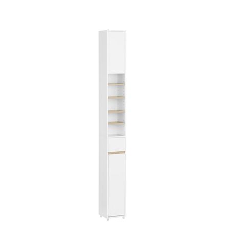 Ce meuble colonne révolutionne l'organisation de votre salle de bain en exploitant la hauteur sous plafond. Il vous permet de ranger une multitude d'articles, des serviettes aux produits de beauté, en les gardant à portée de main tout en libérant de l'espace au sol. Les étagères réglables derrière les portes et les compartiments ouverts offrent une flexibilité totale pour s'adapter à des objets de toutes tailles.