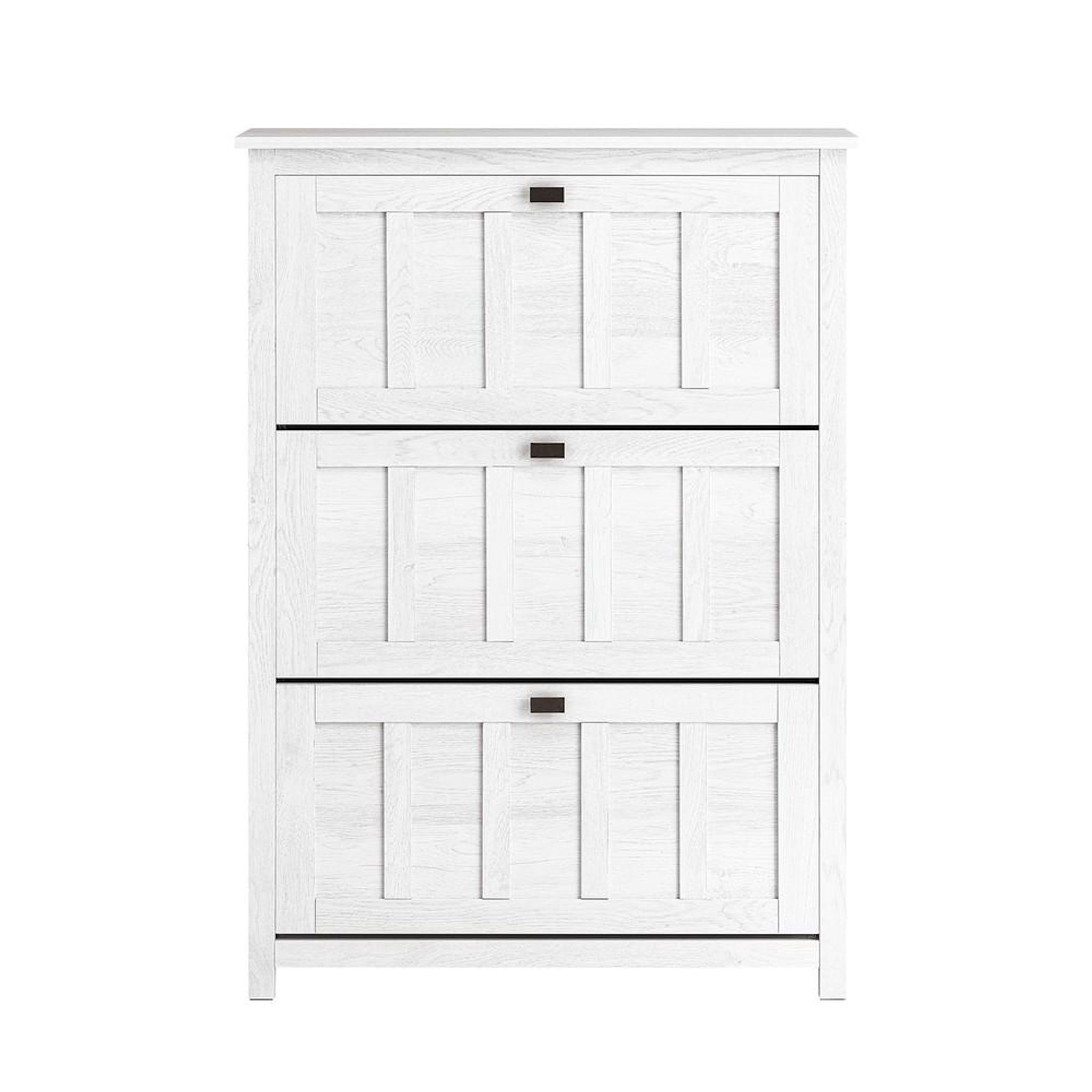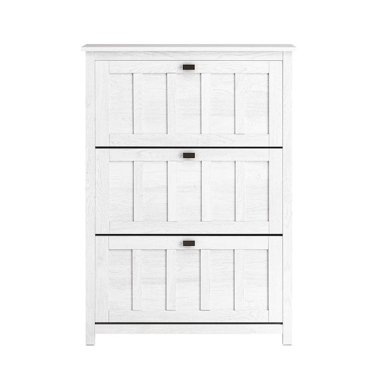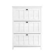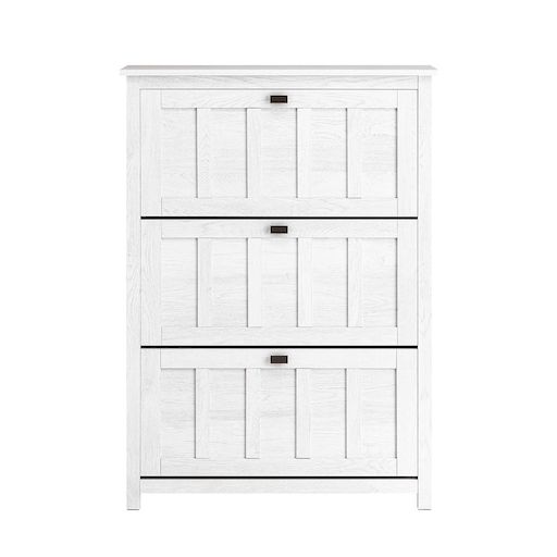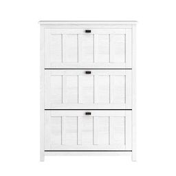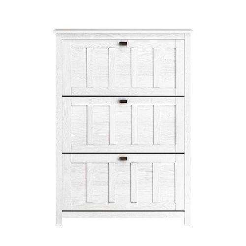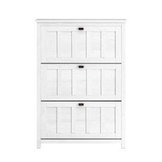 Cette armoire à chaussures 3 portes FSR162-W, au style vintage, apporte une touche d'élégance à votre intérieur tout en offrant une solution de rangement pratique et organisée.