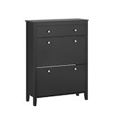 Avec une profondeur de seulement 25 centimètres, il s'adapte aux espaces les plus restreints. Il occupe ainsi très peu de place tout en optimisant l'espace disponible grâce à sa conception intelligente. Le grand tiroir supplémentaire offre un espace de stockage pratique pour de petits objets comme le cirage, le chausse-pied ou vos clés.