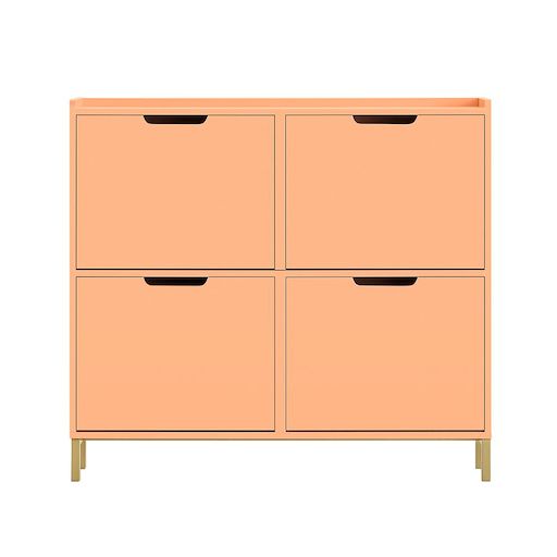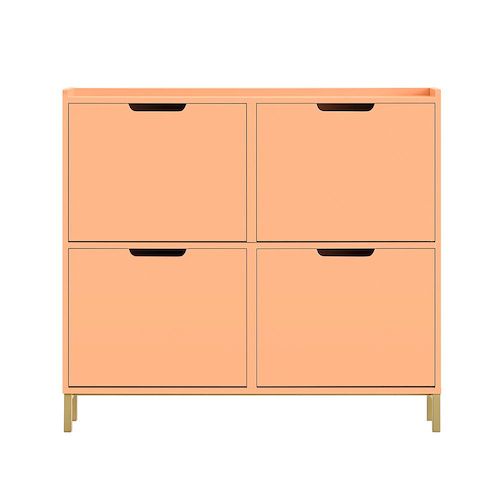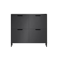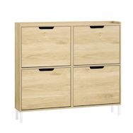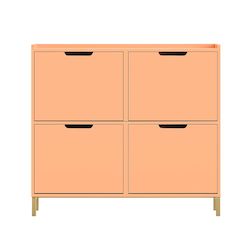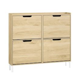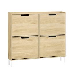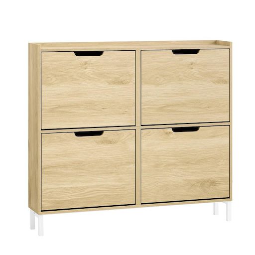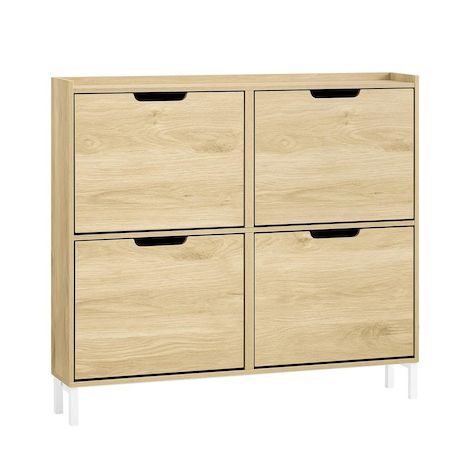 Ce meuble d'entrée révolutionne votre organisation quotidienne en offrant une solution de rangement intelligente pour vos chaussures. Ses quatre abattants vous permettent d'accéder facilement à un espace de stockage pensé sur deux niveaux, éliminant le désordre tout en gardant vos affaires à portée de main.