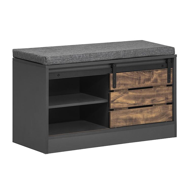 Ce banc de rangement à chaussures au style industriel allie parfaitement fonctionnalité et esthétique pour votre entrée ou séjour.