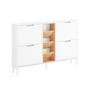 Je veux que vous puissiez profiter de son organisation optimale. Les 4 abattants et les 3 compartiments ouverts permettent de alter vos chaussures par catégorie. Le plateau supérieur est pratique pour y déposer vos clés ou un sac à main, tandis que le compartiment inférieur est dédié aux chaussures d'intérieur que vous utilisez fréquemment.