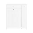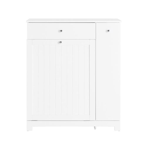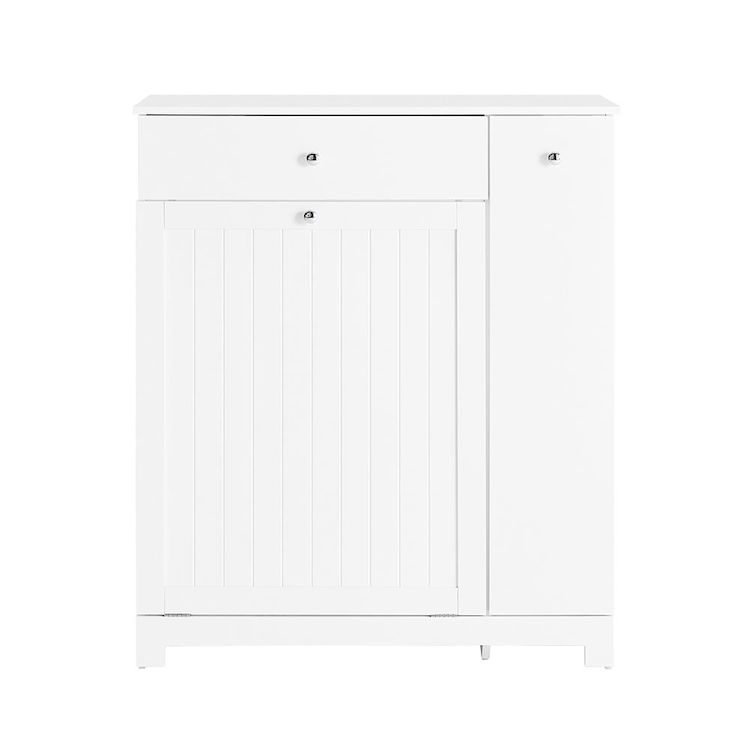 Cette armoire de salle de bain sur pied est conçue pour que vous puissiez séparer votre linge et ranger les détergents, le papier hygiénique ou les serviettes de manière ordonnée et facilement accessible. Son tiroir supérieur, ses deux grands paniers et son compartiment latéral coulissant à trois niveaux offrent une organisation optimale.