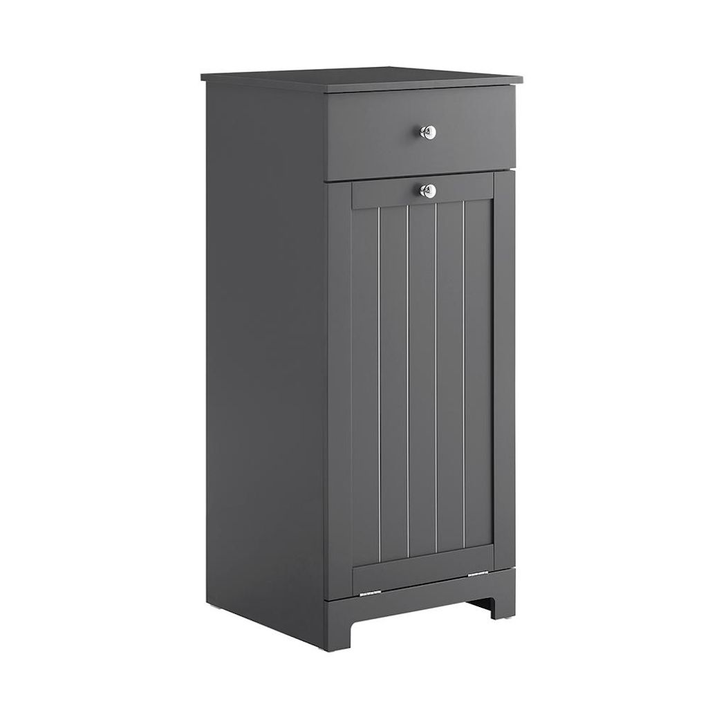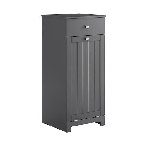 - Conception intelligente avec panier à linge, porte et tiroir dans un format compact.