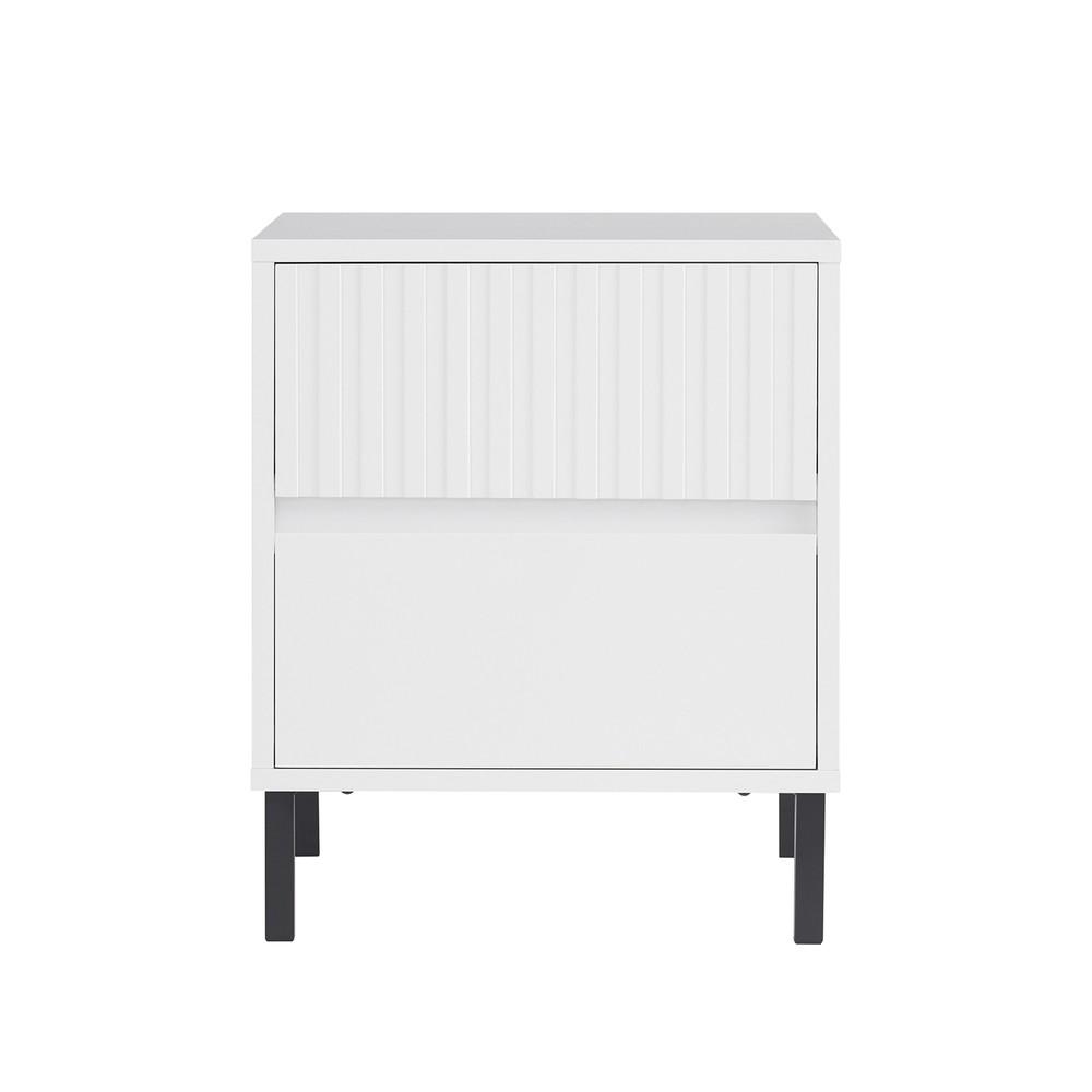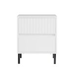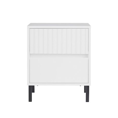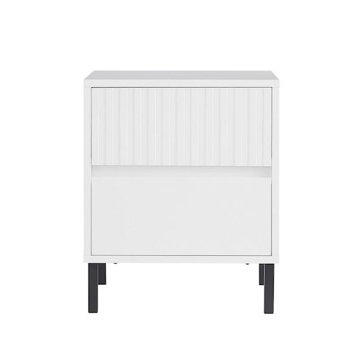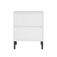 Construite avec des panneaux de MDF et PB de qualité, cette table de chevet allie légèreté et robustesse pour une utilisation quotidienne. Sa finition blanche immaculée s'harmonise avec tous les styles de décoration, des plus altiques aux plus contemporains, tandis que ses pieds métalliques noirs apportent une touche industrielle discrète. La structure a été conçue pour résister au poids de vos objets essentiels.