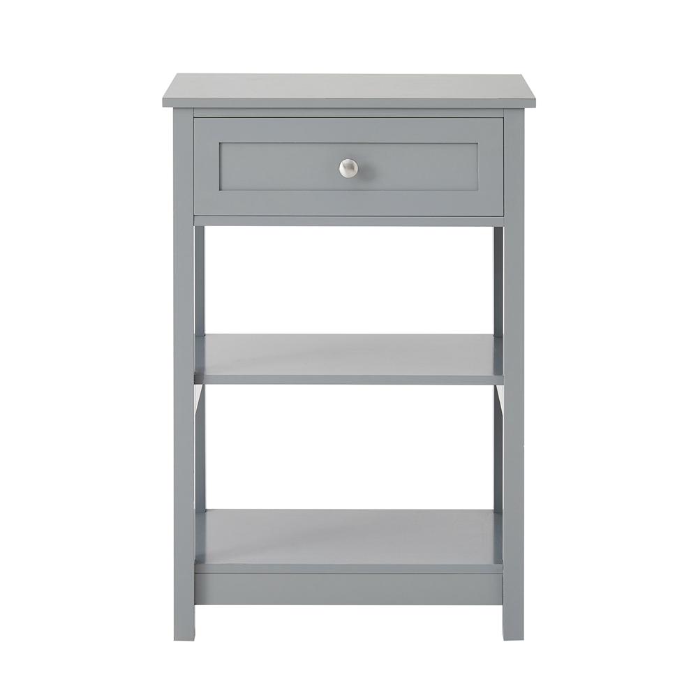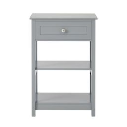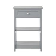 Cette table de chevet gris clair vous offre une solution de rangement ingénieuse à portée de main. Avec son tiroir pratique et ses deux étagères spacieuses, elle vous permet d'organiser vos objets du quotidien comme vos livres, téléphone, lunettes ou télécommande. Son design épuré s'intègre parfaitement à côté de votre lit, vous offrant une surface stable et accessible pour vos affaires personnelles.