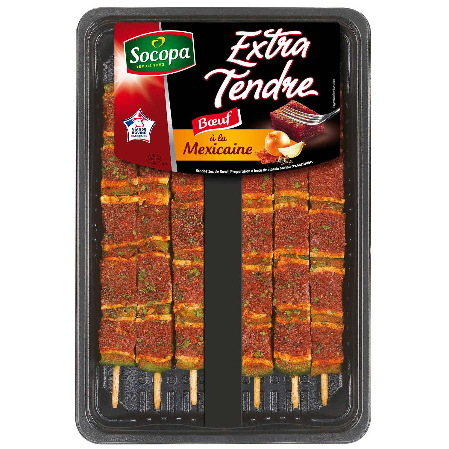 Brochettes de préparation de viande bovine reconstituée,