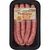 Ingrédients : Viande de porc* 70%, jambon de porc* 20%, eau, sel, sirop de glucose, vinaigre d'alcool poudre, épices, arômes naturels, plante aromatique, colorant: rouge de betterave. Boyau naturel de mouton. *Origine France