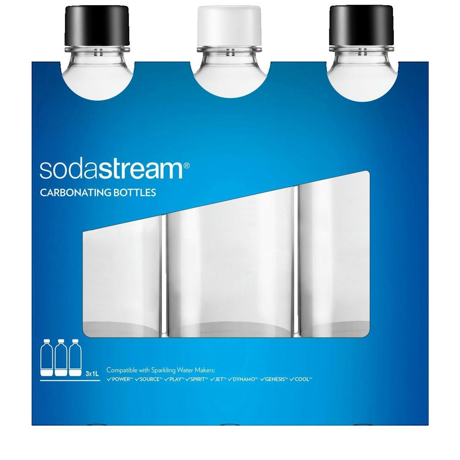 Découvrez l'ensemble de trois bouteilles SodaStream, conçu pour une utilisation domestique. Chaque bouteille a une capacité de 1 litre et est fabriquée en PET léger et durable. Elles sont compatibles avec les modèles de saturateurs SodaStream tels que Power, Jet, Play et Plus. Chaque bouteille est é