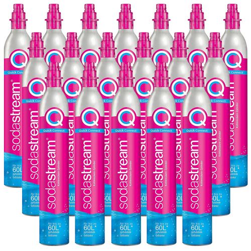 Sodastream 18 X CYLINDRE QUICK CONNECT Le nouveau système de poignée rose Quick Connect est unique, et offre une nouvelle façon d'insérer et de retirer sans effort votre recharge de gaz sans avoir besoin de le visser dans la machine à gazéifier. Vous n'avez plus besoin de vérifier si la recharge de gaz a été suffisamment ou trop serrée.