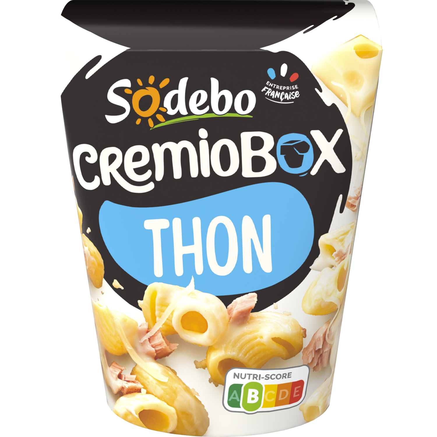 Ingrédients : Pâtes fraîches cuites (semoule de BLE dur, eau, OEUF, sel), CREME légère, THON, EMMENTAL, CABILLAUD, oignons, eau, jus et zeste de citron, huile de tournesol et/ou colza, amidon et/ou fécule, conservateur : vinaigre tamponné, sel, ail.