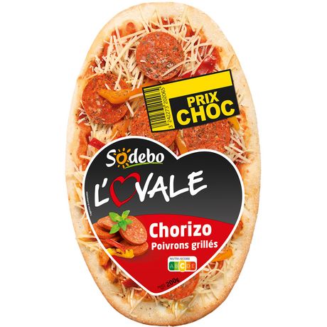 Pizza composée de 42% de pâte fine, 14% de chorizo cuit et 9% de poivrons grillés. Ne tournez plus en rond, choisissez l'ovale !