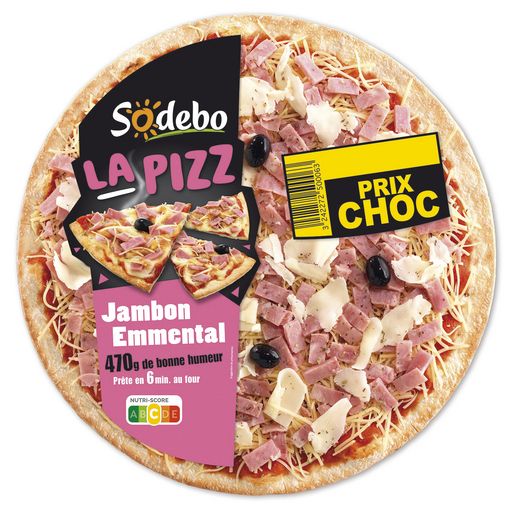 La Pizz' c'est pour toutes les occasions mais surtout pour tous les goûts ! .Pizza composée de 40% de pâte fine, 17% de jambon cuit standard et 13% d'emmental