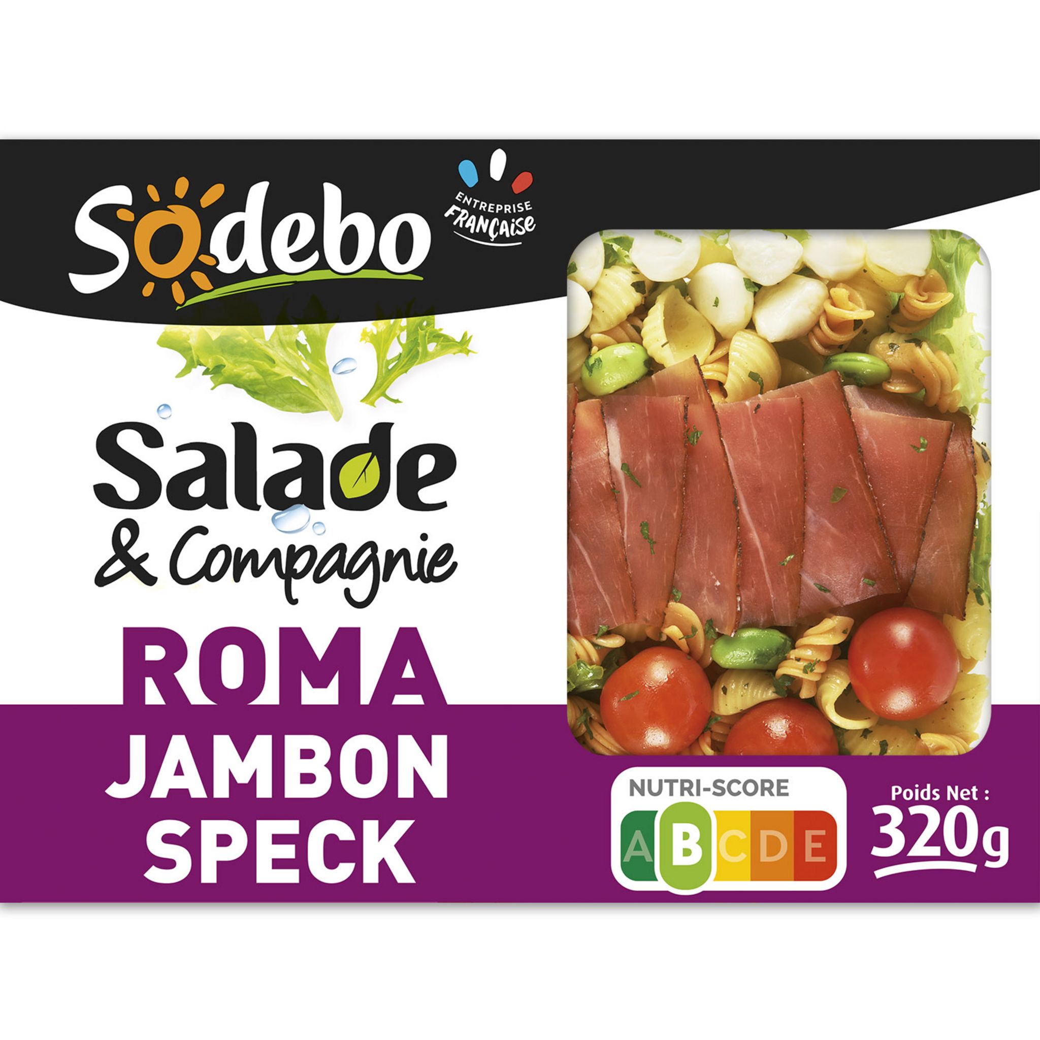 Salade & compagnie roma jambon speck crudités pâtes