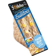 Sandwich composé de 55% de pain suédois garni de 13% de thon, 12% d'oeuf et 0,4% de citron